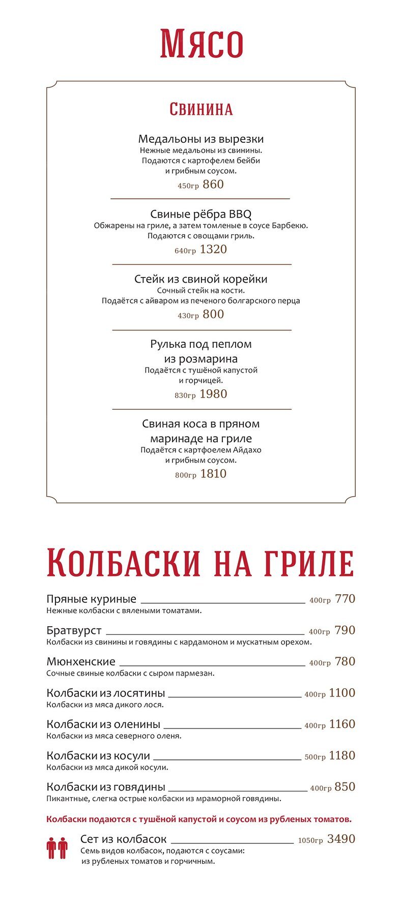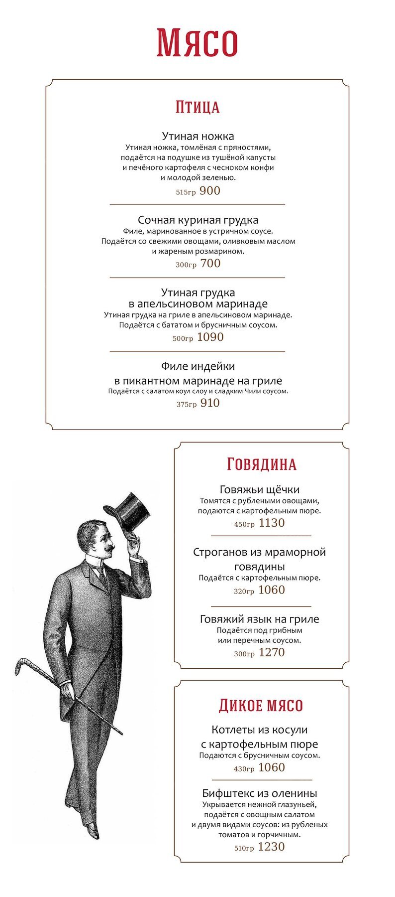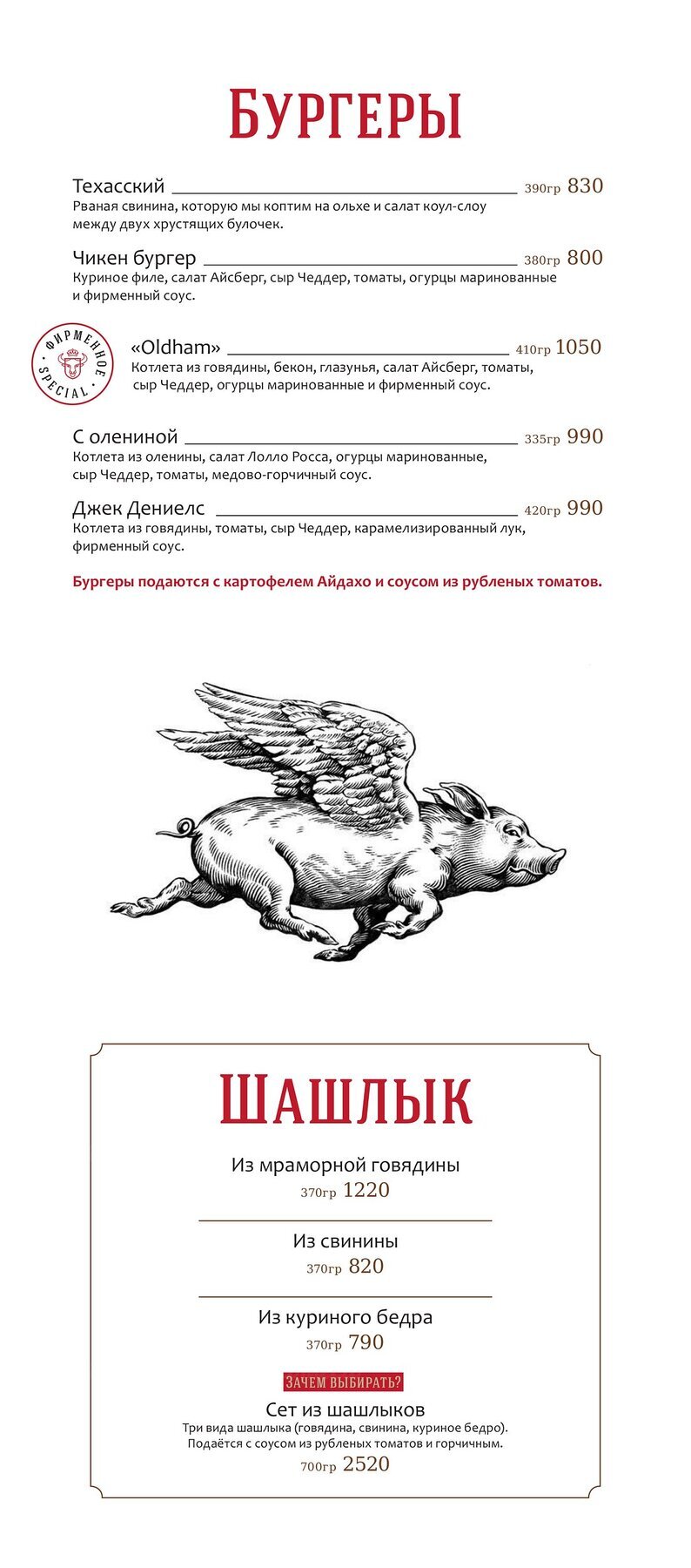 МенюСтейк-хаус Oldham на набережной реки Мойки